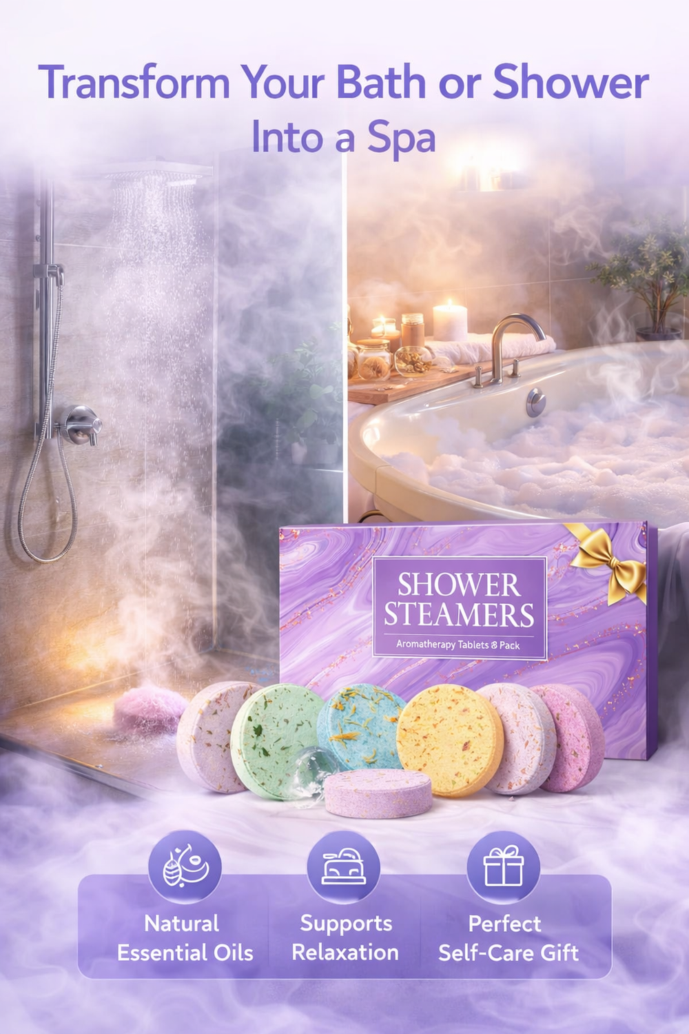 Transform your everyday shower into a calm, spa-like escape. These shower steamers use natural essential oils to create a relaxing aromatherapy experience during your daily routine.